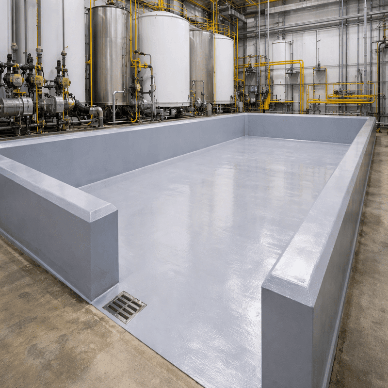 EE-71 produces a tough, chemical resistant coating on concrete, ferrous and non-ferrous metals. Use of Reactive Flexibilizing agents gives excellent flexibility without sacrificing chemical resistance making EE-71 ideal for concrete or metal floors with thermal, design or structural stress, without the need for fiberglass mat reinforcement. High abrasion resistance in an easy to clean surface. EE-71 is suitable for hand or spray application at up to 100 mils per coat.