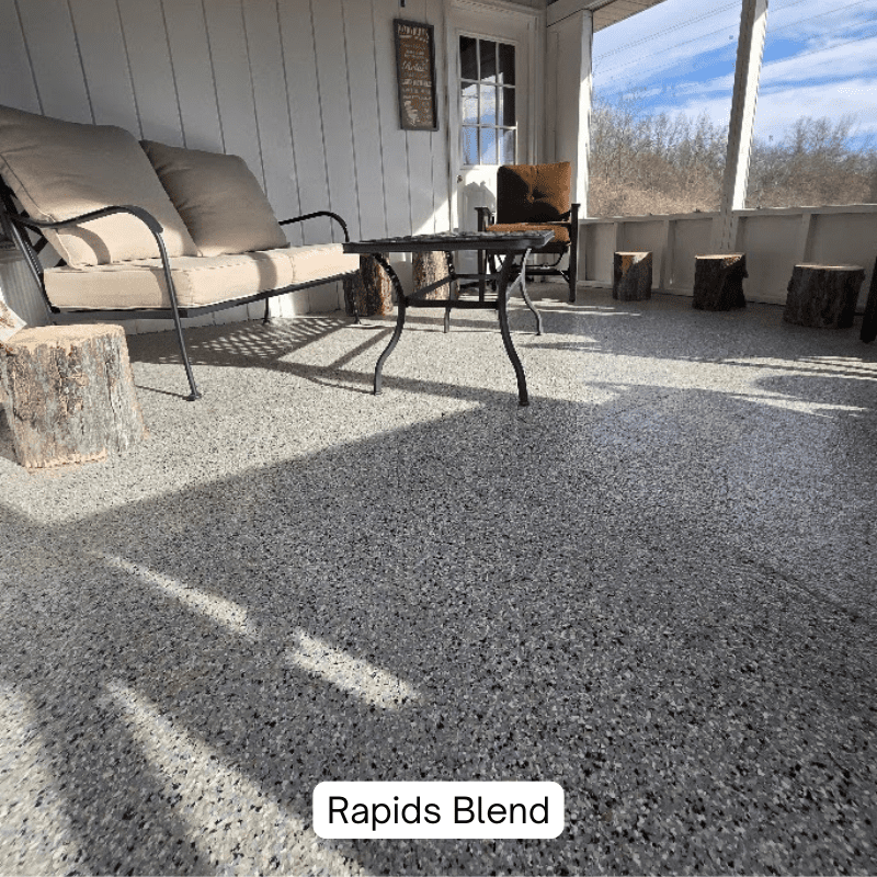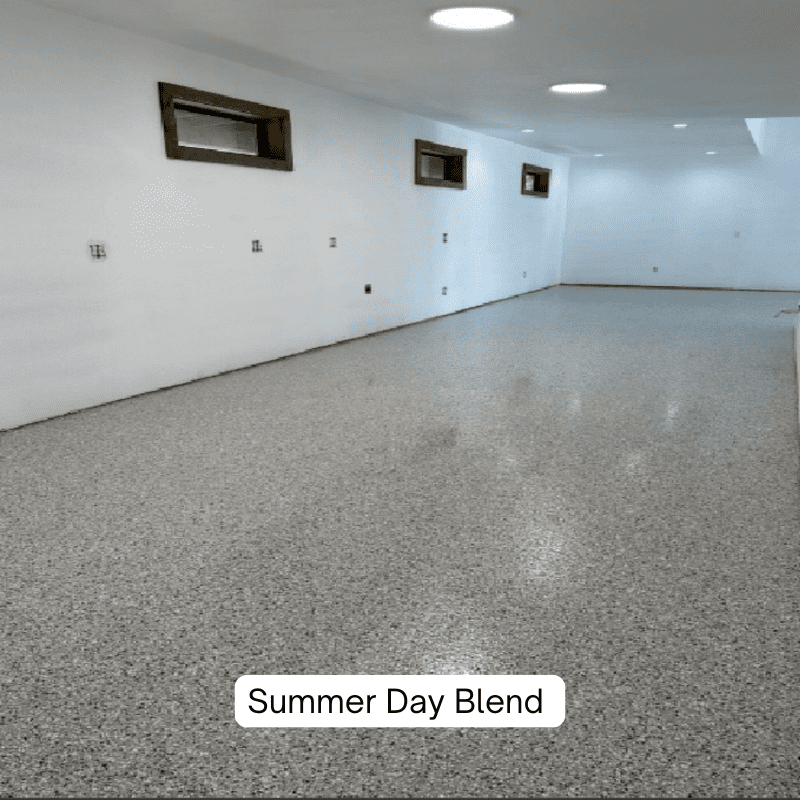 - Adds a decorative look to any epoxy, polyaspartic, polyurea, urethane flooring project