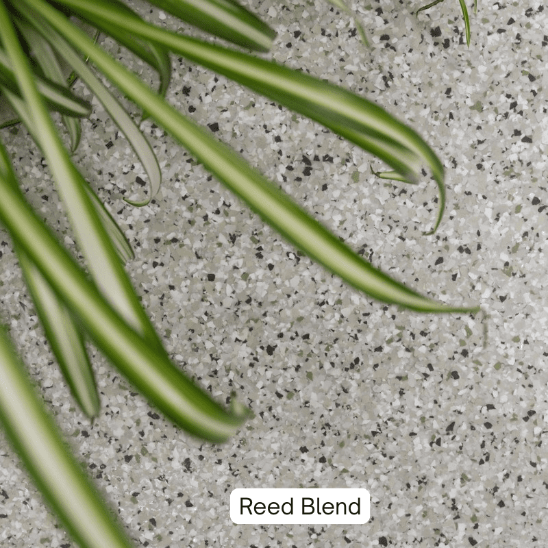 **For Outdoor Projects Consider Using our Outdoor UV Resistant Blends. Otherwise, tone vinyl chip/flake colors offer longer term UV stability for outdoor applications. However blends with intense, rich and bright colors such as Lime Green, Hot Pink, Dark Blue not recommended for outdoor use as they will fade and shift in color over 1-2 year period. For all outdoor projects recommend a non-yellowing Aliphatic clear top coat for maximum UV stability.