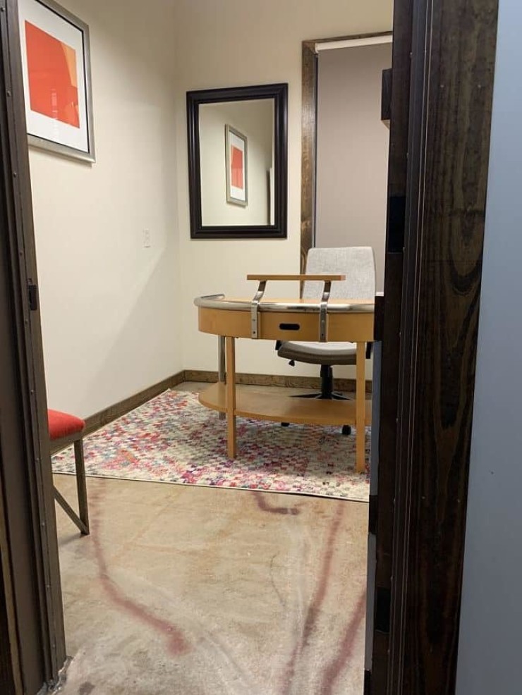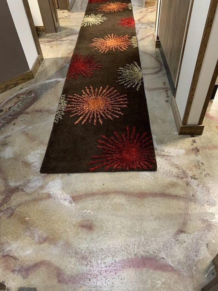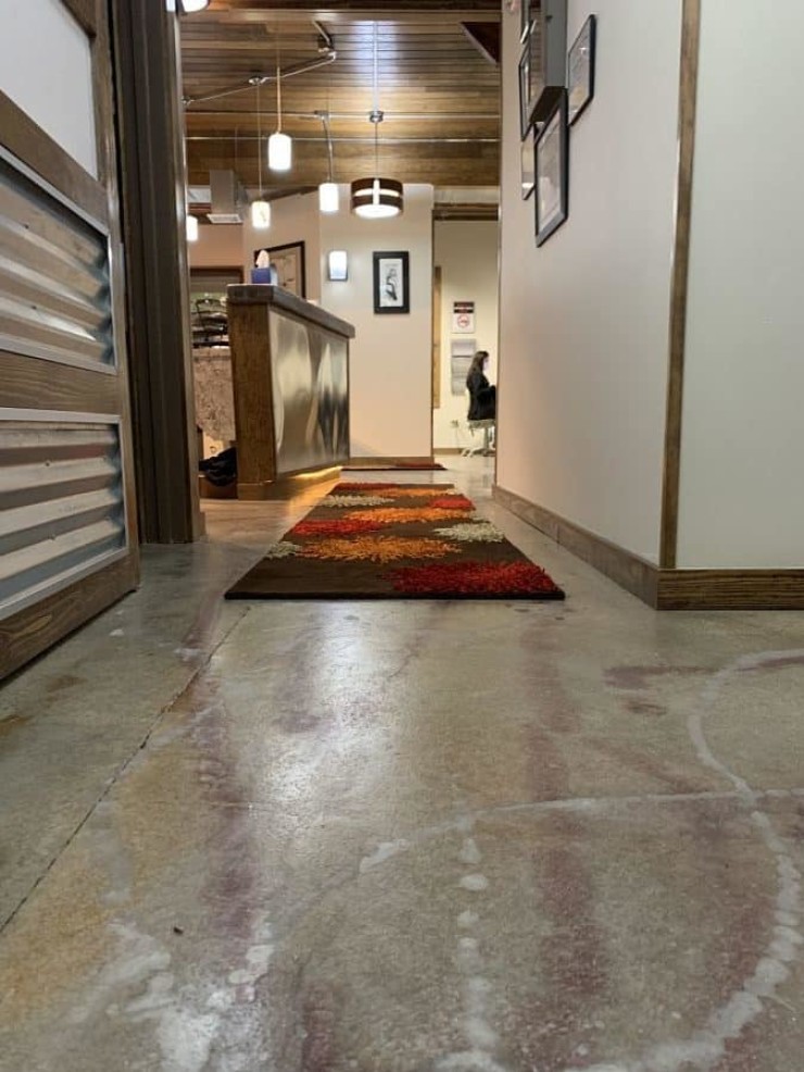 Dental office project to refurbish their office concrete floor with a tough, durable coating system able to handle a high volume of foot traffic while creating a unique natural look accented with metallic marbled epoxy pigments mixed into a clear 100% solids commercial grade epoxy topcoated with a low gloss high solids urethane topcoat.